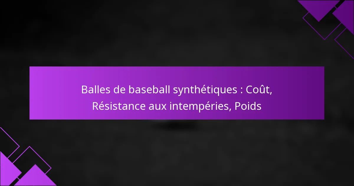 Les balles de softball et de baseball se distinguent par leur taille et leur poids, ce qui influence considérablement le jeu dans leurs sports respectifs. Les balles de softball pèsent généralement entre 180 et 200 grammes, tandis que les balles de baseball varient de 145 à 150 grammes. Comprendre ces différences est crucial pour les joueurs et les entraîneurs afin d’assurer le respect des réglementations et d’améliorer les performances sur le terrain.